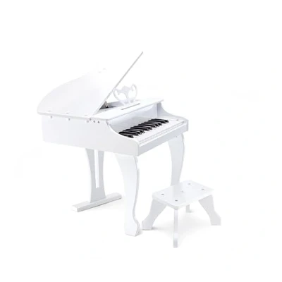 Hape Deluxe White Grand Piano Thirty Key Toy with Stool, Electronic Keyboard Musical Set for Kids 3 Years+