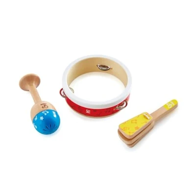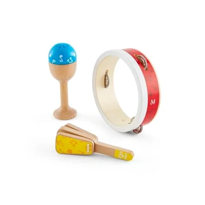 ENCOURAGE THEIR LOVE OF MUSIC: Get mini musicians started on their musical journey with this Junior Percussion Set, which helps them to experiment with volume, rhythm and sound production. DEVELOPS MOTOR SKILLS: As children play with the tambourine, maraca and hand clapper, they’ll not only strengthen their sense of rhythm but also fine-tune their motor movements, like hand-eye coordination and finger dexterity. PITCH PROTECTION: The clapper has been designed to restrict sound output while the tambourine’s surface has been intuitively designed to keep the volume down to comfortable levels to protect little ears. MADE FOR SMALL HANDS: Each instrument has been designed with an ergonomic, easy-to-grip handle that’s comfortable for little hands to hold. SOLO OR BAND SESSIONS: Your toddler will have a blast playing these instruments alone or add them to other musical sets to help your junior rockstar start their very own band with friends., Manufacturer: Hape