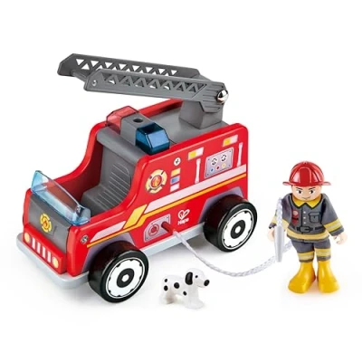 Hape E3024 Wooden Fire Truck with Firefighter and Dog