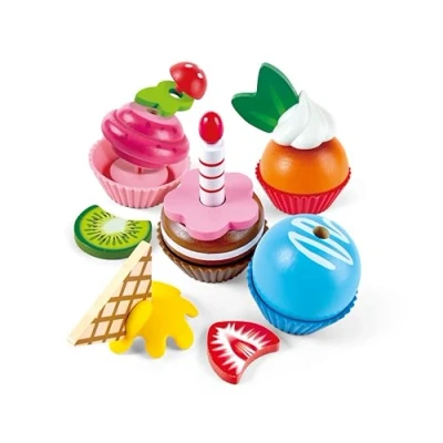 Hape E3157 Colourful Wooden Cupcakes, Realistic Pretend Play Food Kitchen Toy for Children Ages 3+ Years, Multicolor
