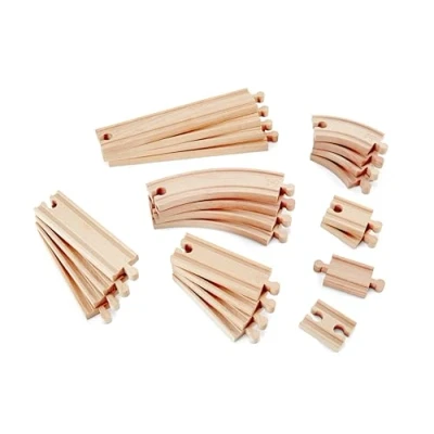 Hape E3707 Super Expansion Rail Pack Wooden Train Track Accessories, Multicolor, 20.32 x 48.01 25.4 cm