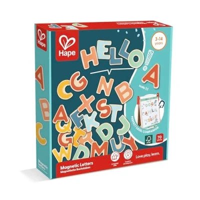 A REINVENTED CLASSIC - Magnetic letters are popular in both educational and home settings, but our letters have bright colors and are made of materials that last for years ENCOURAGE CONFIDENCE - These letters help toddlers recognize the shape and look of letters, which increases their confidence and ultimately their reading skill DEVELOPS MOTOR SKILLS - During play, the child develops fine motor skills by pairing the letters For all types of games: they are optimal for individual play, but also for play and learning with others An optimal companion for the easel: you can stick the magnets to the Hape easel to create fun messages or drawings