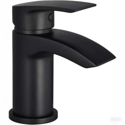 Hapilife Black Basin Taps Waterfall Round Bathroom Sink Mixers Cloakroom Brass with Hoses