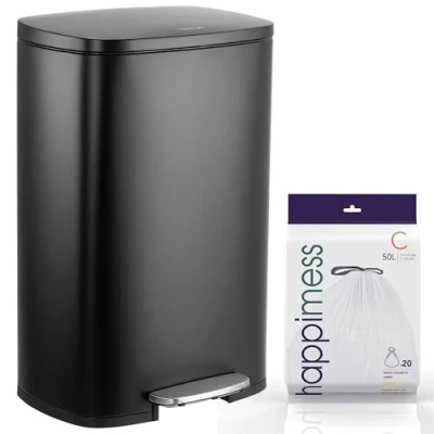 [DURABLE AND EASY-CLEAN]: We believe in form following function, creating minimalist designs that are a breeze to keep clean. Made from high-quality steel, our trash cans feature a durable, lightweight inner plastic bucket that?s easy to remove. Family-friendly, brushed stainless steel is smudge-resistant and fingerprint proof. Plus, all of our trash cans will fit standard size trash bags - no custom liners needed! Large trash can can hold 50 liters or 12.98 gallons of trash, small trash can hold 5 liters or 1.3 gallons of trash Rustproof stainless steel construction International products have separate terms, are sold from abroad and may differ from local products, including fit, age ratings, and language of product, labeling or instructions.