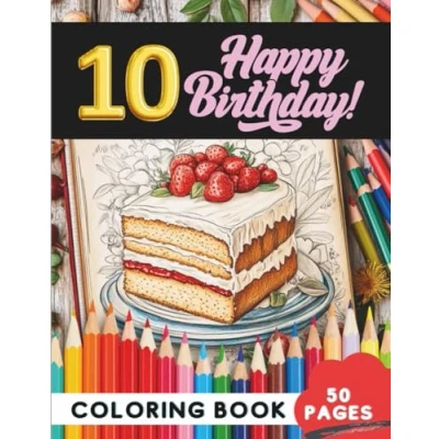 Happy 10th Birthday Coloring Book for Kids: 50 Pages of Party Themed Fun (Age 10 Books Creative Focus Preteens)
