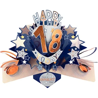Happy 18th Birthday 18 Today Pop Up Greeting Card Love Kate's Cards Him POP204MC18