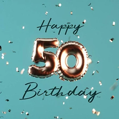 Happy 50th Birthday: Birthday Party Guest Book with 110 Pages Balloons Gold Turquoise