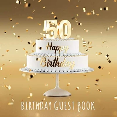 Happy 50th Birthday: Birthday Party Guest Book with 110 Pages Gold Edition