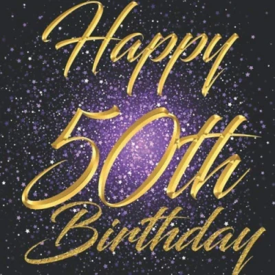 Happy 50th Birthday: Guest Book For Birthday Party: Purple star confetti Fiftieth Keepsake Memento Gift Family Friends To Write In With Messages Good Wishes And Comments