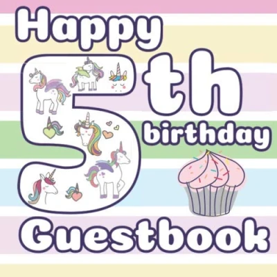 Happy 5th Birthday Guestbook: Alicorn and Unicorn Themed Celebration Party Guest Book for Kids, Parents, Family, Friends