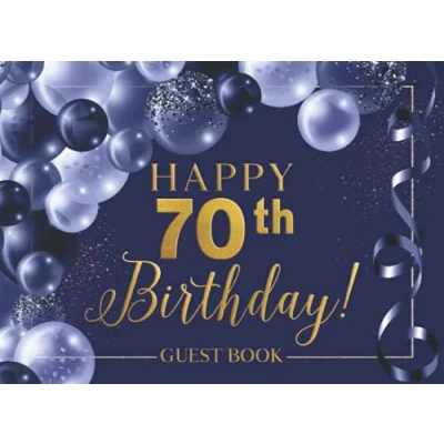 Happy 70th Birthday!: Birthday Party Notes and Wishes Guest Book Blue Gold Cover Design