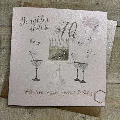 Happy 70th Birthday Card Daughter in Law Champagne Glasses Pink Roses by White Cotton Cards SS42 DIL70