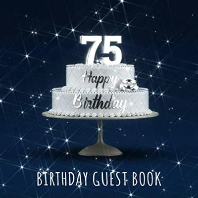 Happy 75th Birthday: Birthday Party Guest Book with 110 Pages Blue Edition