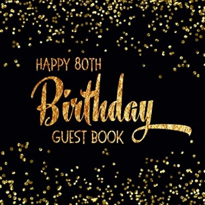 Happy 80th Birthday Guest Book: Black & Gold Message and Gift Log Book For Party Celebration Memories