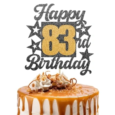 Happy 83rd Birthday Cake Topper Black and Gold Glitter Number 83