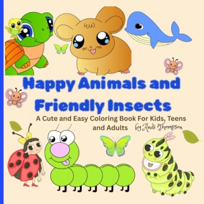 Happy Animals and Friendly Insects: A Cute Easy Coloring Book For Kids, Teens Adults