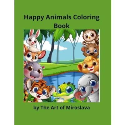 Happy Animals Coloring Book: Book Cute and Easy Animal Pages for Kids Ages 36