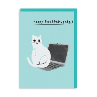 Happy Bir9669.. Laptop Cat Birthday Card