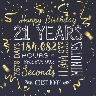 Happy Birthday 21 Years: Guest Book for a 21st Party Decorations & Gifts him or her Years Gold Confetti Edition ... Messages to treasure and Photos of Guests