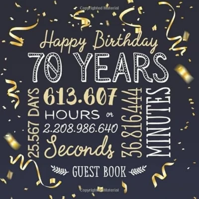 Happy Birthday 70 Years: Guest Book for a 70th Party Decorations & Gifts him or her Years Gold Confetti Edition ... Messages to treasure and Photos of Guests