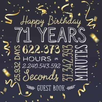 Happy Birthday 71 Years: Guest Book for a 71st Party Decorations & Gifts him or her Years Gold Confetti Edition ... Messages to treasure and Photos of Guests