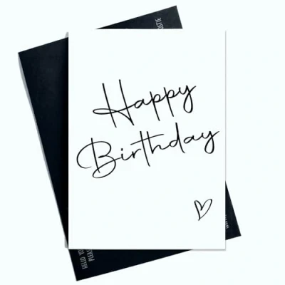 Happy Birthday Card Modern Design Aesthetic For Him Her Black Heart AP42