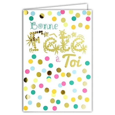 Happy Birthday Card Confetti Pink Blue Green Orange Gold Made in France
