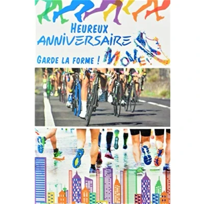 Happy Birthday Card Glossy Blue Multi Sports Shape Fitness Running Marahton Trainer Shoes Road Bike Cycling City Made in France