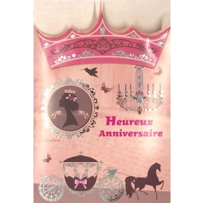 Happy Birthday Card Princess Girl Crown Pink Embossed Silver Carriage Shiny Cinderella Horse Butterflies Bird Hummingbird Portrait Mirror Chandelier with White Envelope 12 x 17.5 cm 67 1023/1