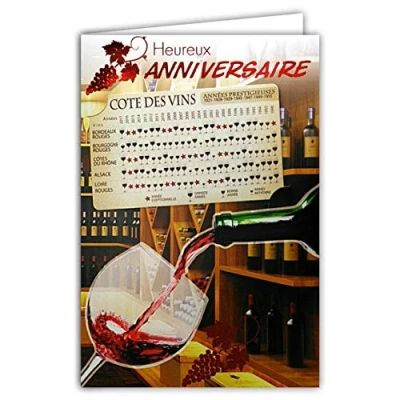 Happy Birthday Card Red Gloss with Small Detachable to put in a wallet La Codes des Wines de Bordeaux Borgogne Rhône Alsace Loire