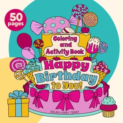 Happy Birthday Coloring and Activity Book for Kids: 50 Easy Fun Pages with Beautiful designs cake, Candles, Cute Animals, Mazes, Games & Quotes Girls Boys