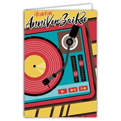 Happy Birthday Music Card Turns Vinyl Platinum Retro Vintage Illustration with Envelope Format 12 x 17.5 cm Paper 300 g from Sustainably Managed Forests Made in France 69 8041