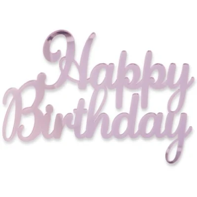 Glittering mirror plexiglass side topper with the words "Happy Birthday", ideal for placing on the side of the cake for birthday In mirrored plexiglass colour pink gold Size: 7 x 16 cm Total height: 12 cm Ideal for decorating your cake The lettering is supported by two extensions that ensure easy attachment., Manufacturer: Graziano