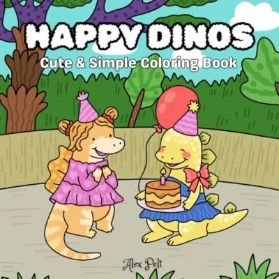 Happy Dinos: Cute & Simple Coloring Book For Kids