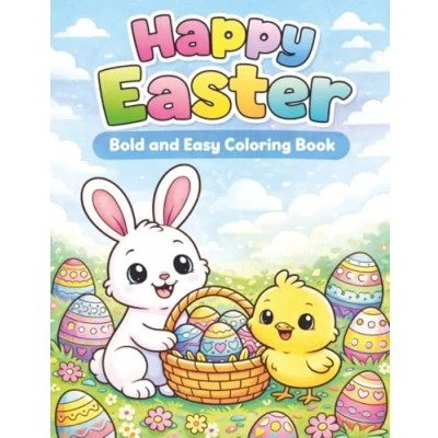 Happy Easter: Bold and Easy Coloring Book: Cute Bunnies, Chicks, Eggs Baskets Simple Easter Pages for Children