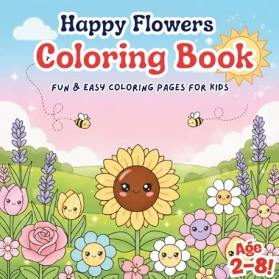 Happy Flowers Coloring Book: Fun & Easy Book for Everyone