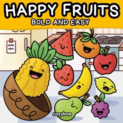 Happy Fruits: Easy Coloring Book Bold and Simple Designs for Adults Kids Featuring Cute Fruits Relaxed