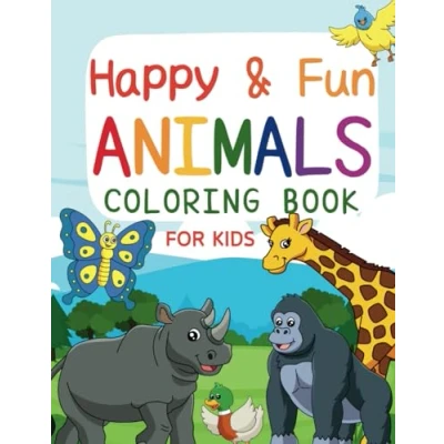 Happy & Fun Animals Coloring Book for Kids: Pages Children Ages 4 8 with Various Animal Designs