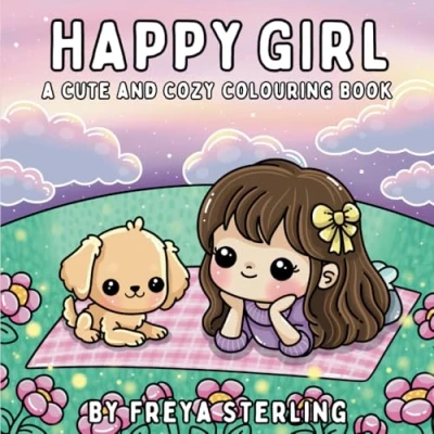 Happy Girl A Cute and Cozy Colouring Book: Adorable Scenes Smiling Characters for Adults Teens, Bold Easy Designs Stress Relief Relaxation