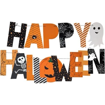 π PRE-STRUNG & READY TO HANG β No DIY needed! Our Halloween banner comes pre-assembled on a strong black string for quick and hassle-free decorating. π» FUN, FAMILY-FRIENDLY DESIGN β Each letter features cute Halloween characters and patterns including pumpkins, ghosts, skeletons, spiders and webs β ideal for kids and adults alike. πΈοΈ 2 METRES LONG β PERFECT FOR ANY SPACE β Whether it's a classroom, living room, office, party table or front door, this 2m garland adds spooky charm anywhere! πͺ PREMIUM QUALITY CARD β Made from durable card stock with vibrant prints β strong enough to last all season but light enough for easy hanging. π§ IDEAL FOR HALLOWEEN DECOR β A brilliant Halloween party decoration for haunted houses, fancy dress events, school discos, or autumn home dΓ©cor.