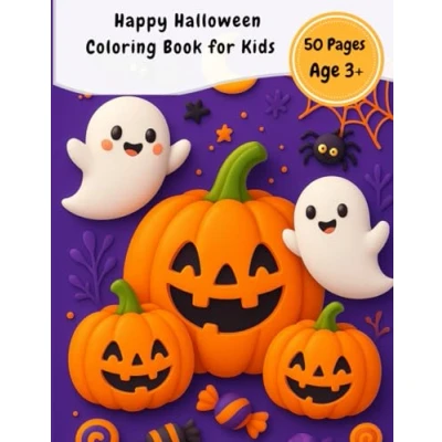 Happy Halloween Coloring Book for Kids: Fun and Easy Pages Kids Ages 3 7 with Cute Ghosts, Pumpkins Monsters