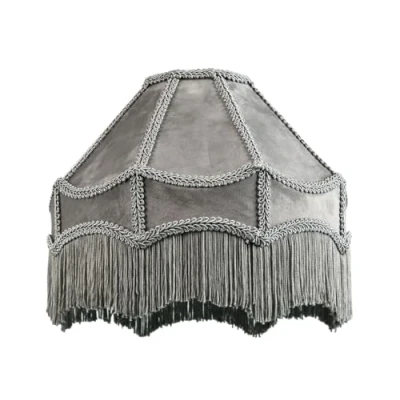 Traditionally designed empire shaped Victorian style pendant lamp shade with handmade embroidered trims. Features soft velvet fabric in dove grey with decorative lower hanging tassels. The dimensions of the shade as follows: Height - 19cm (excluding tassels), Top diameter - 10cm, Bottom diameter - 30cm. Maximum wattage allowed is 60w. This shade is fitted with a reversible gimbal meaning usage as a handing pendant shade or table/floor lamp shade. Complete with shade reducer ring allowing for most pendant light and lamp fittings - B22/BC, E14/SES and E27/ES. Light bulb is not included., Weight: 1.763698096 Pounds, Manufacturer: Happy Homewares