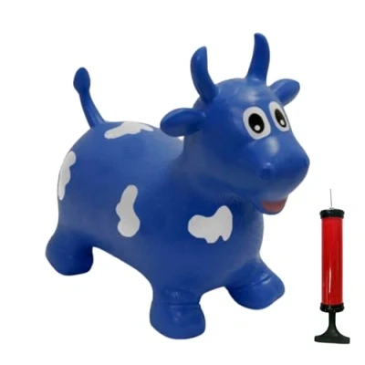 Happy Hopperz Inflatable Bouncy Animal with Grippable Ears/Horns, Easy to Clean Space Hopper for Indoor and Outdoor Play, Bouncing Toy, Pump Included, 12 Months 5 Years, Blue Bull