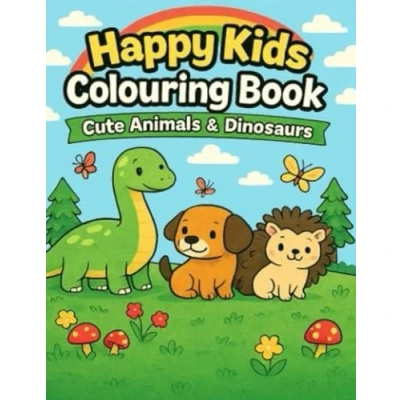 Happy Kids Colouring Book: Cute Animals & Dinosaurs: Fun and Easy Pages for