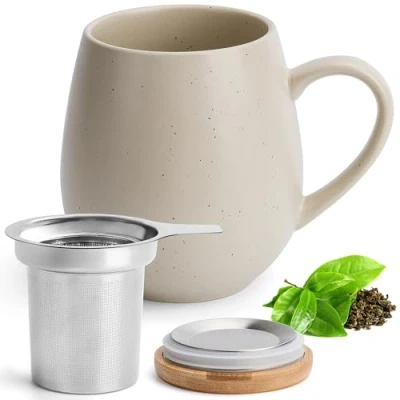 Happy Lemuro Ceramic Tea Cup with Lid and Strainer, 360.0 milliliters, Wedding