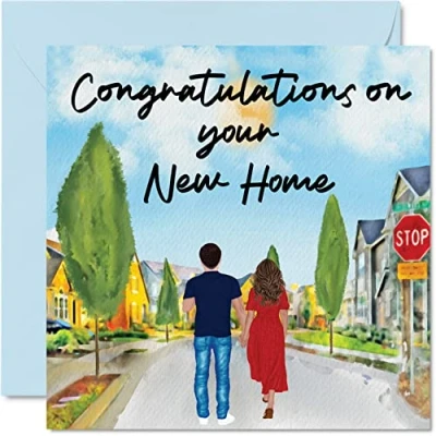 Happy New Home Card Suburb Family Congratulations Housewarming House Cards, Congrats Moving 145mm x Welcome Warming Greeting Cards for Friends