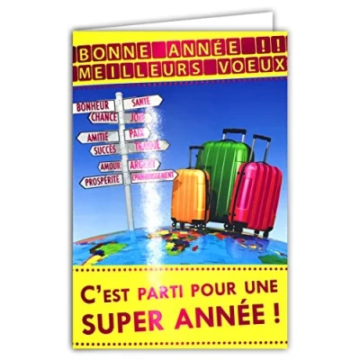 Happy New Year Card Best Wishes Bright Pink with Envelope Travel Directions Peace on Earth Happiness Health Love Friendship Luck Success Prosperity Bloom 61 4050 A BA