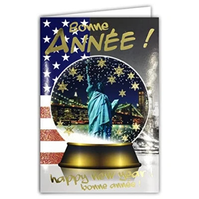 Happy New Year Gold Glitter Card with Envelope Best Wishes Snowglobe York City NYC USA United States of America Statue Liberty Monument Flag 61 4044 B BA