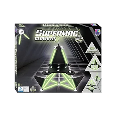 Happy People Supermag GlowStix Magnetic Construction Toy Building Blocks Game Play Set Sticks Educational Games Supplement (Supermag 50 Pieces)