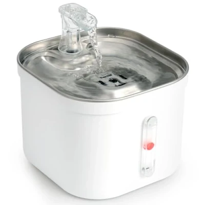 Large 2L Capacity: Holds up to 67oz of water, providing a continuous fresh water supply for your pets, making it perfect for households with multiple cats or small dogs. 24/7 Automatic Operation: Designed for constant running, this fountain ensures your pet always has access to clean, flowing water, encouraging hydration and promoting overall health. Faucet-Style Flow: Mimics a natural water source with its faucet-like flow, attracting pets to drink more water and enjoy a healthier, more hydrated lifestyle. Advanced Filtration System: Equipped with a strong filtration system that effectively removes impurities, odors, and chlorine, delivering pure and tasty water to your pet. Ultra-Quiet Pump: Features a silent pump that operates below 30dB, ensuring a peaceful environment in your home while keeping your pets hydrated without disturbing their or your sleep.